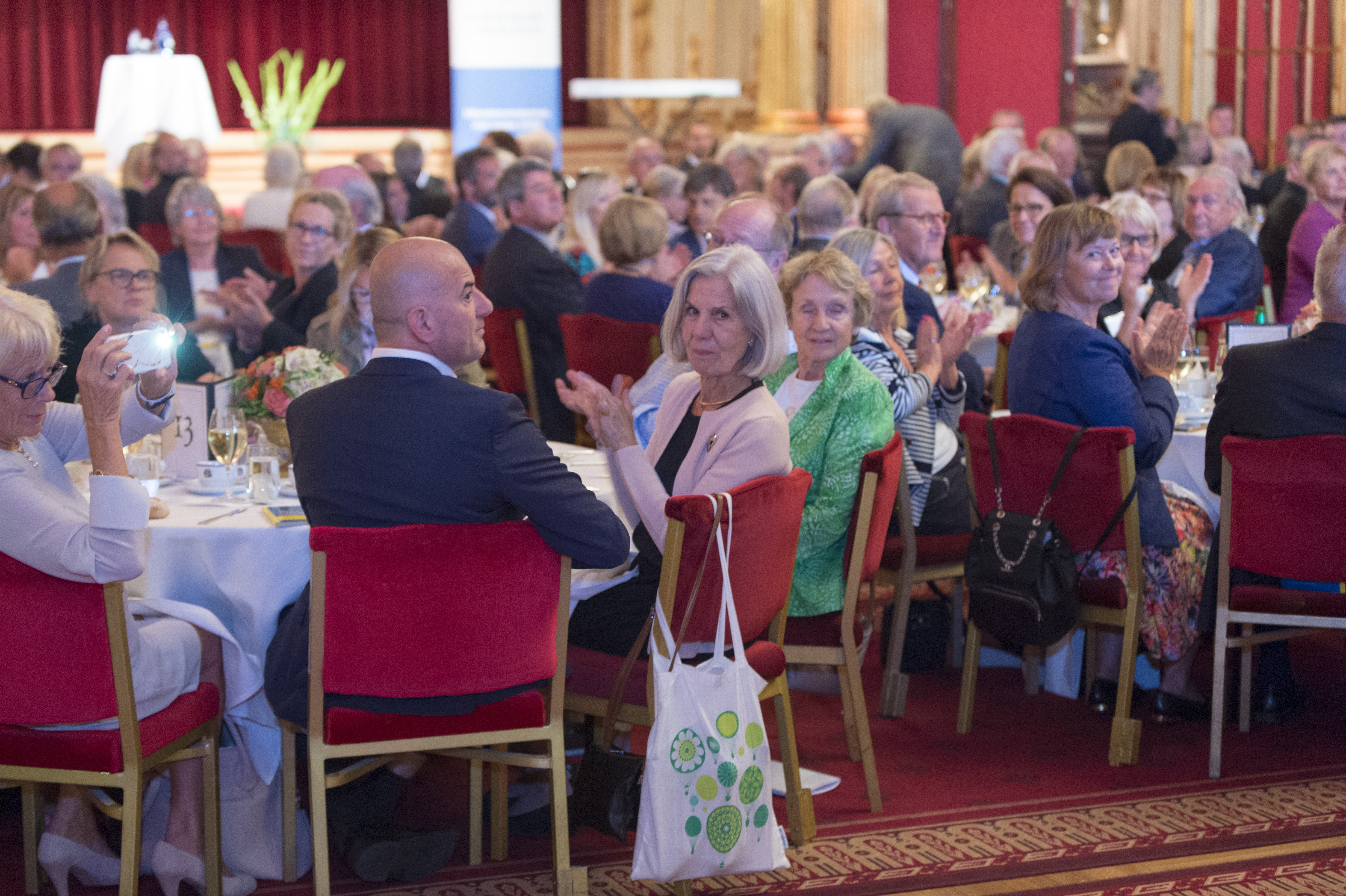 Efter årsmöte på Grand Hôtel avslutades dagens firande med utdelningen av utmärkelsen Årets svensk i världen till Nina Stemme under en vacker jubileumslunch. Där hade vi även äran att inte mindre än sju tidigare mottagare av utmärkelsen också deltog.